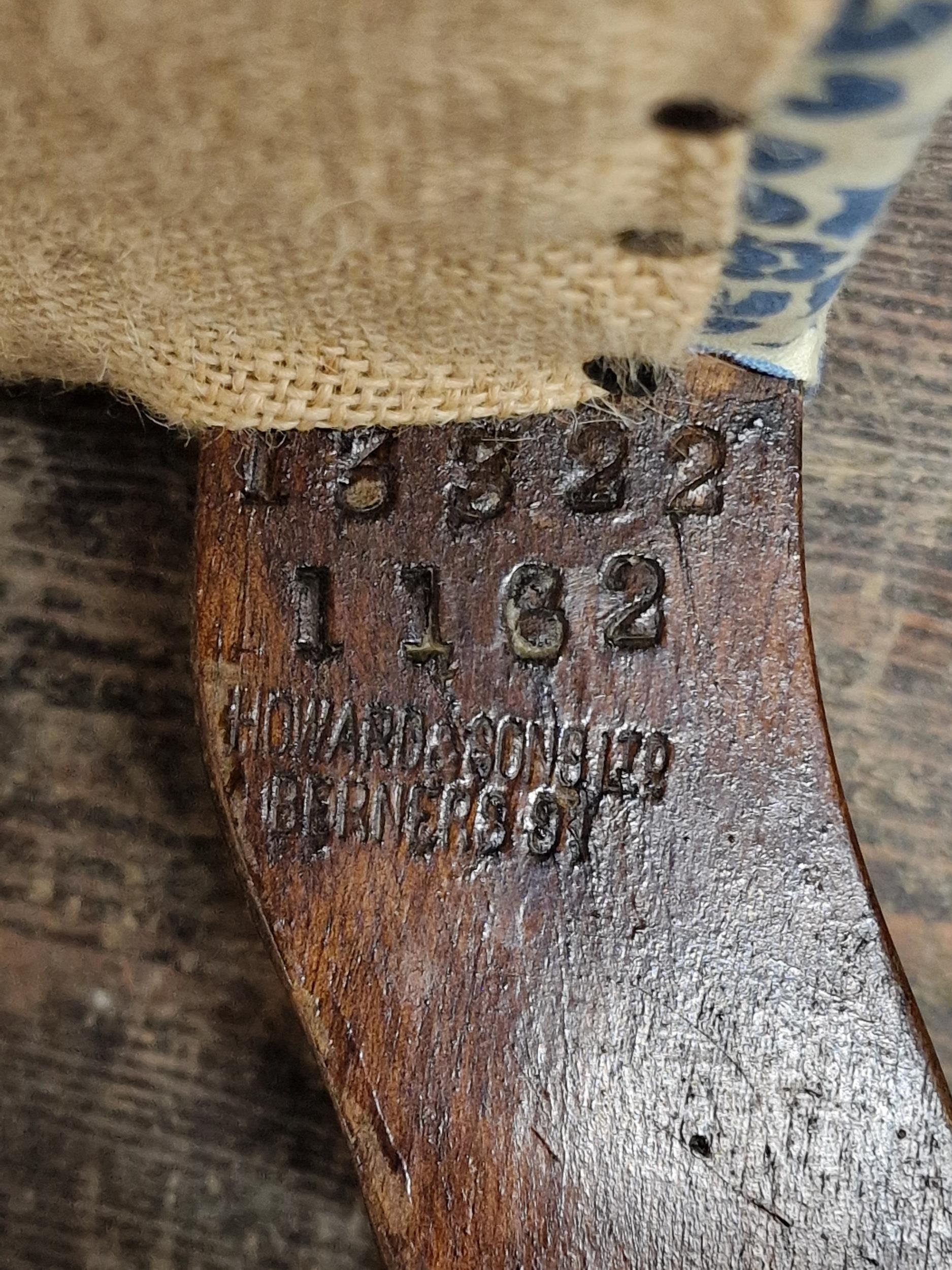 A collective report on the four Howard Chairs - condition is very good, no signs of repairs and no major faults or defects to report. The upholstery is clean and free of stains, tears or rips. There is some minor wear to the wooden frame and legs but this is minimal and to be expected with a piece of this age. Please see attached pictures of the chairs below.