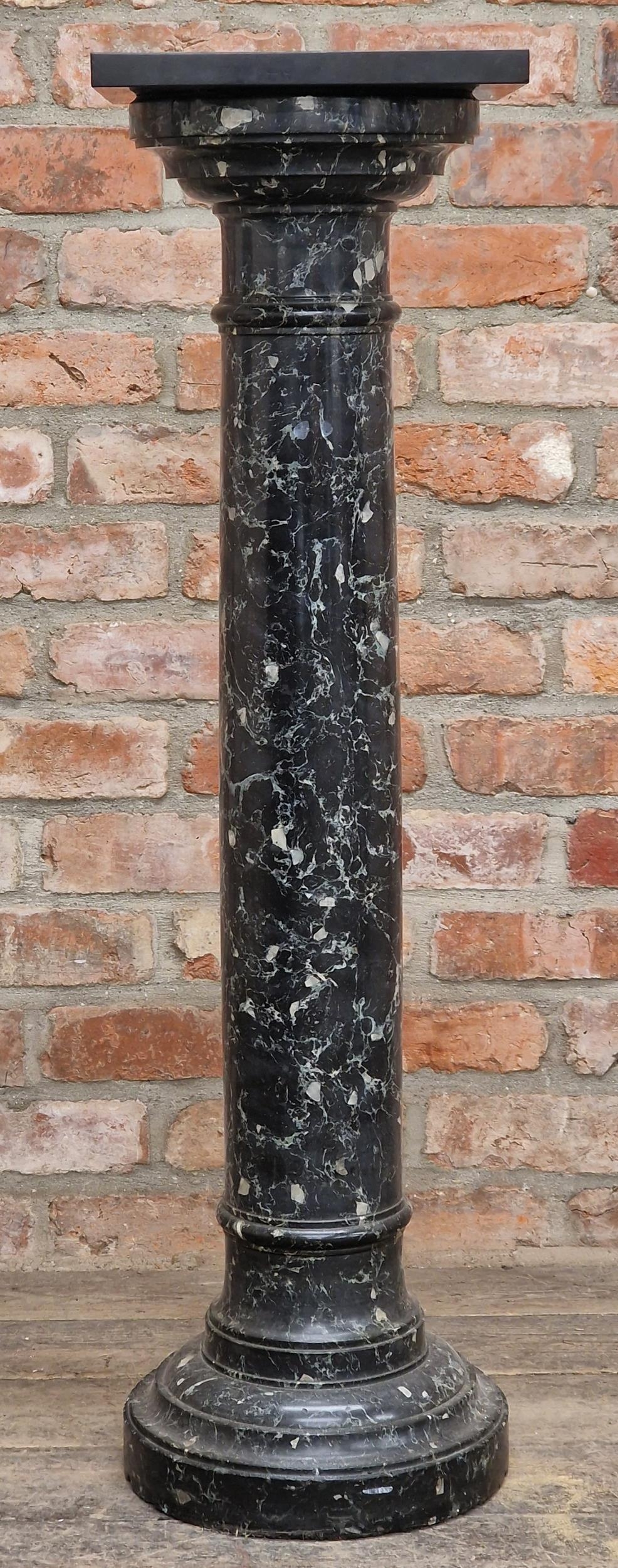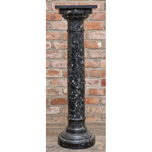 Composite faux black marble column plinth, H 109cm x W 30cm x D 30cm