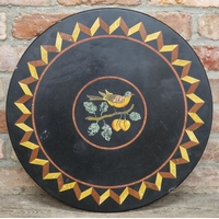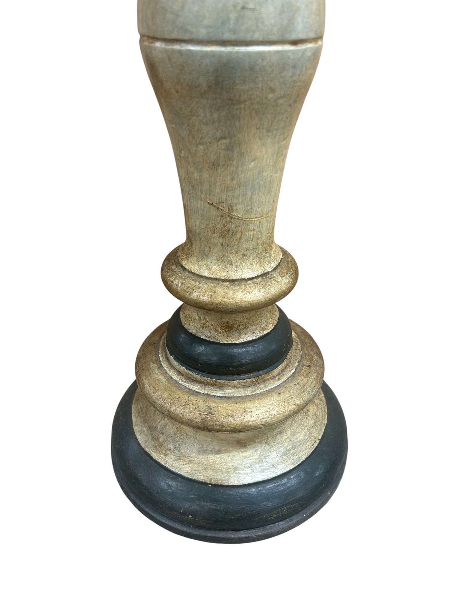 Large turned wood table lamp with painted green and banded decoration, H 69cm