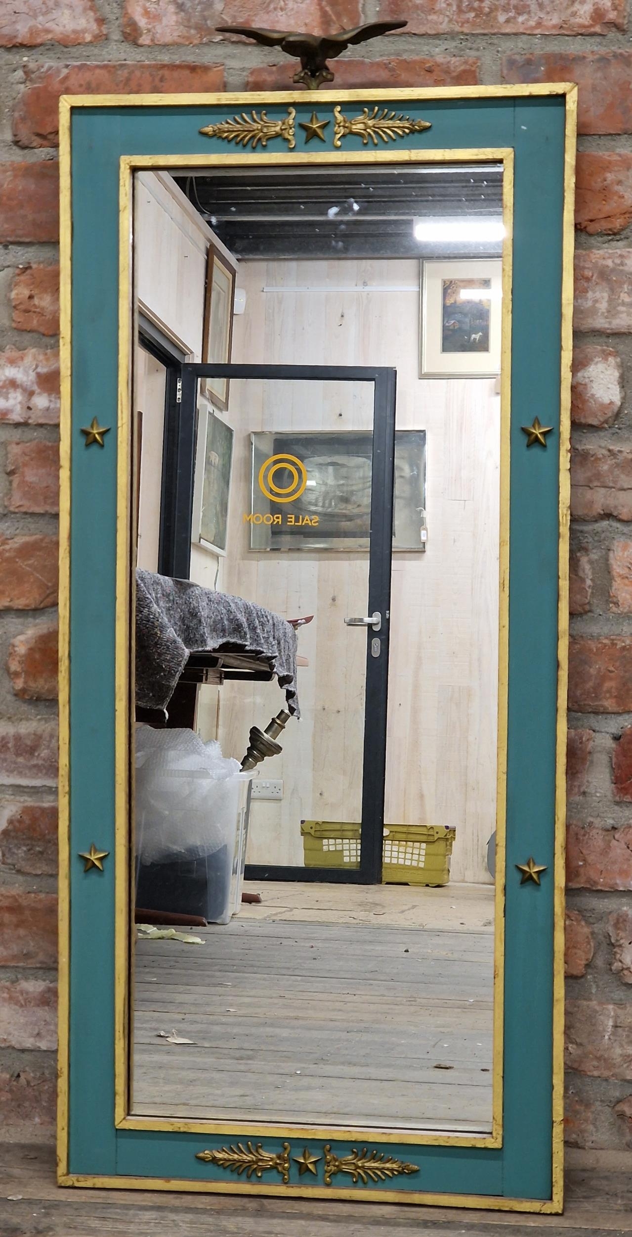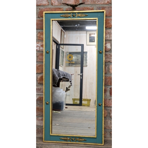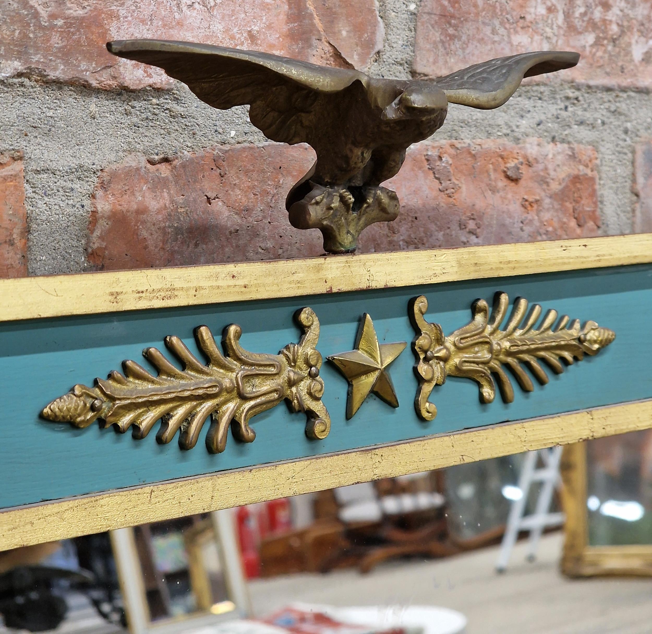 Antique gilded wall mirror with gilt metal mounts and eagle surmount, H 110cm x W 49cm