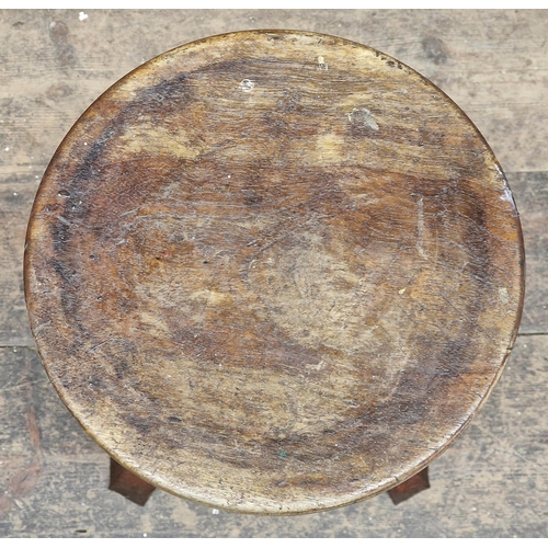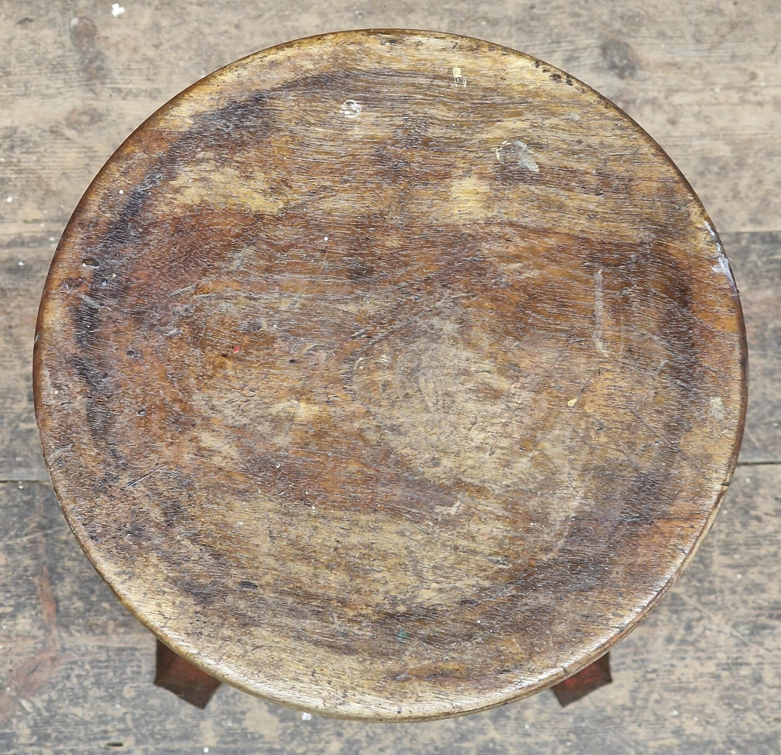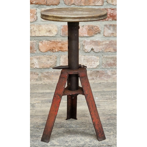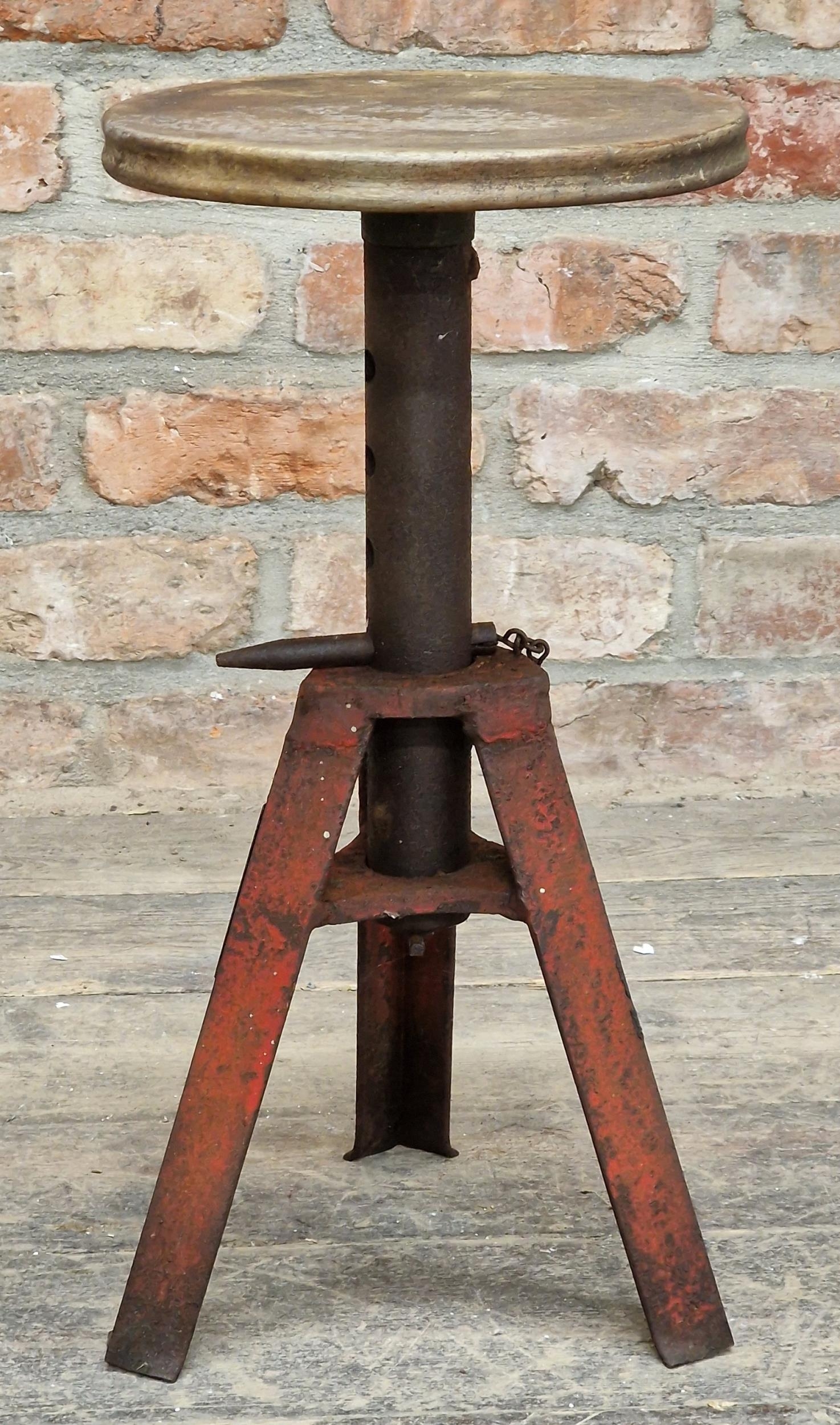 Vintage industrial metal adjustable stool with circular wooden top, H 51cm x W 26cm