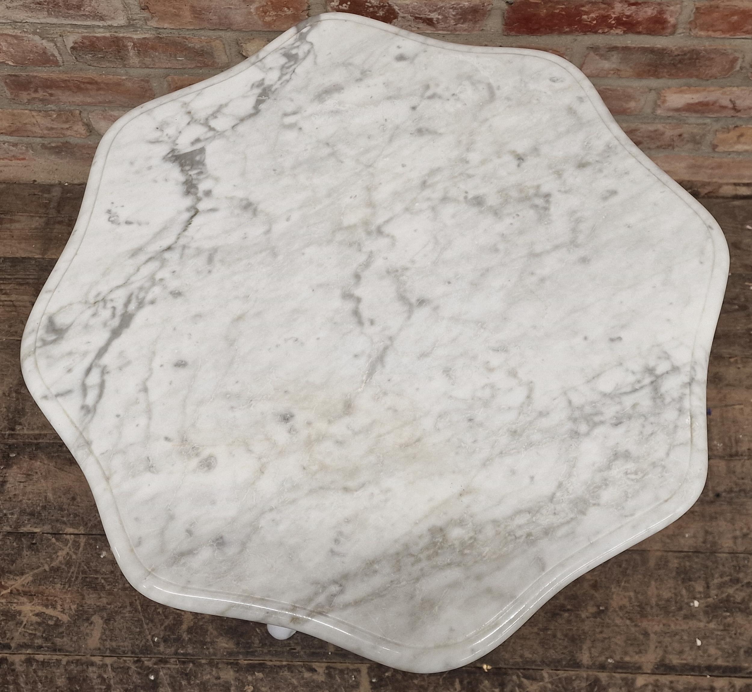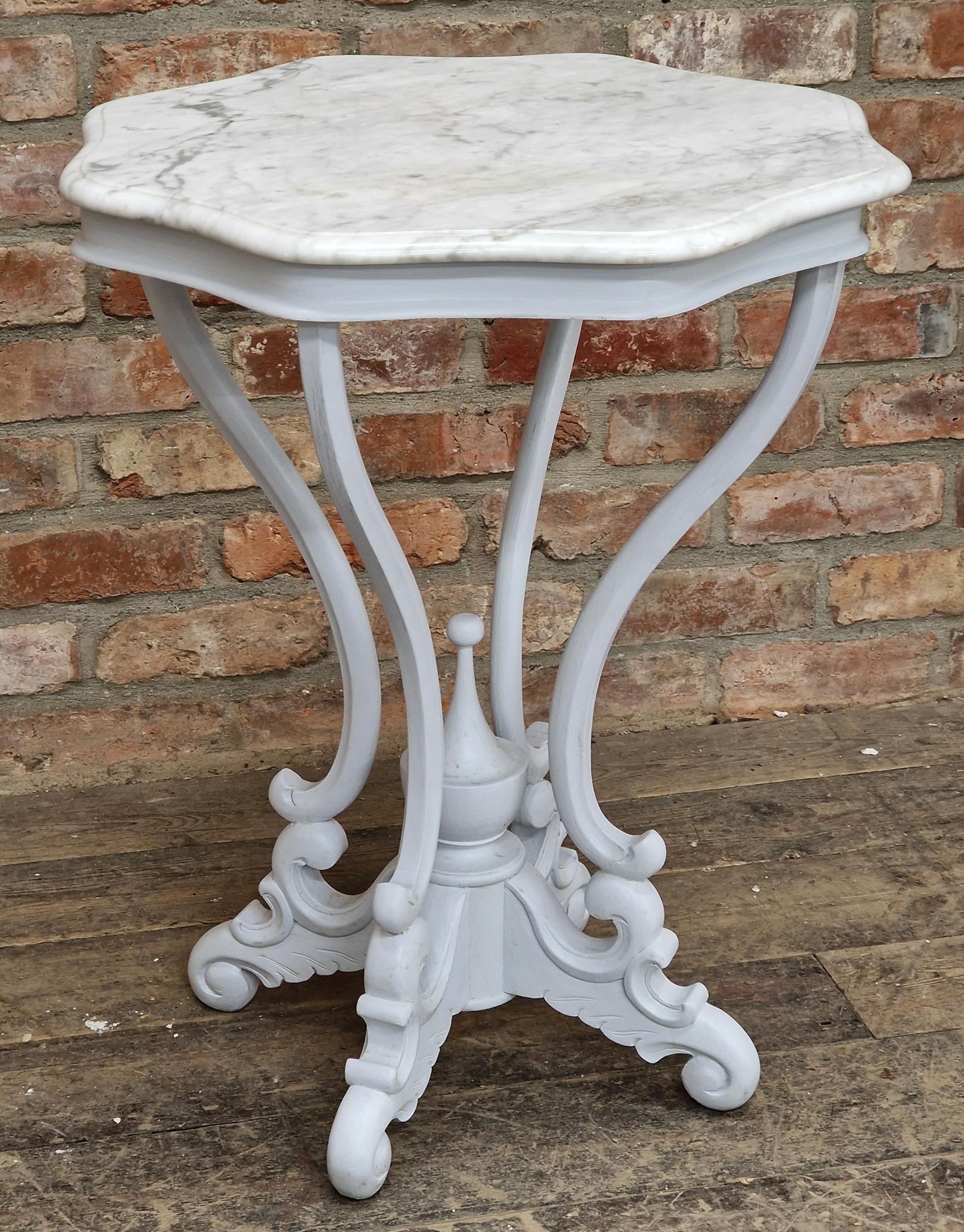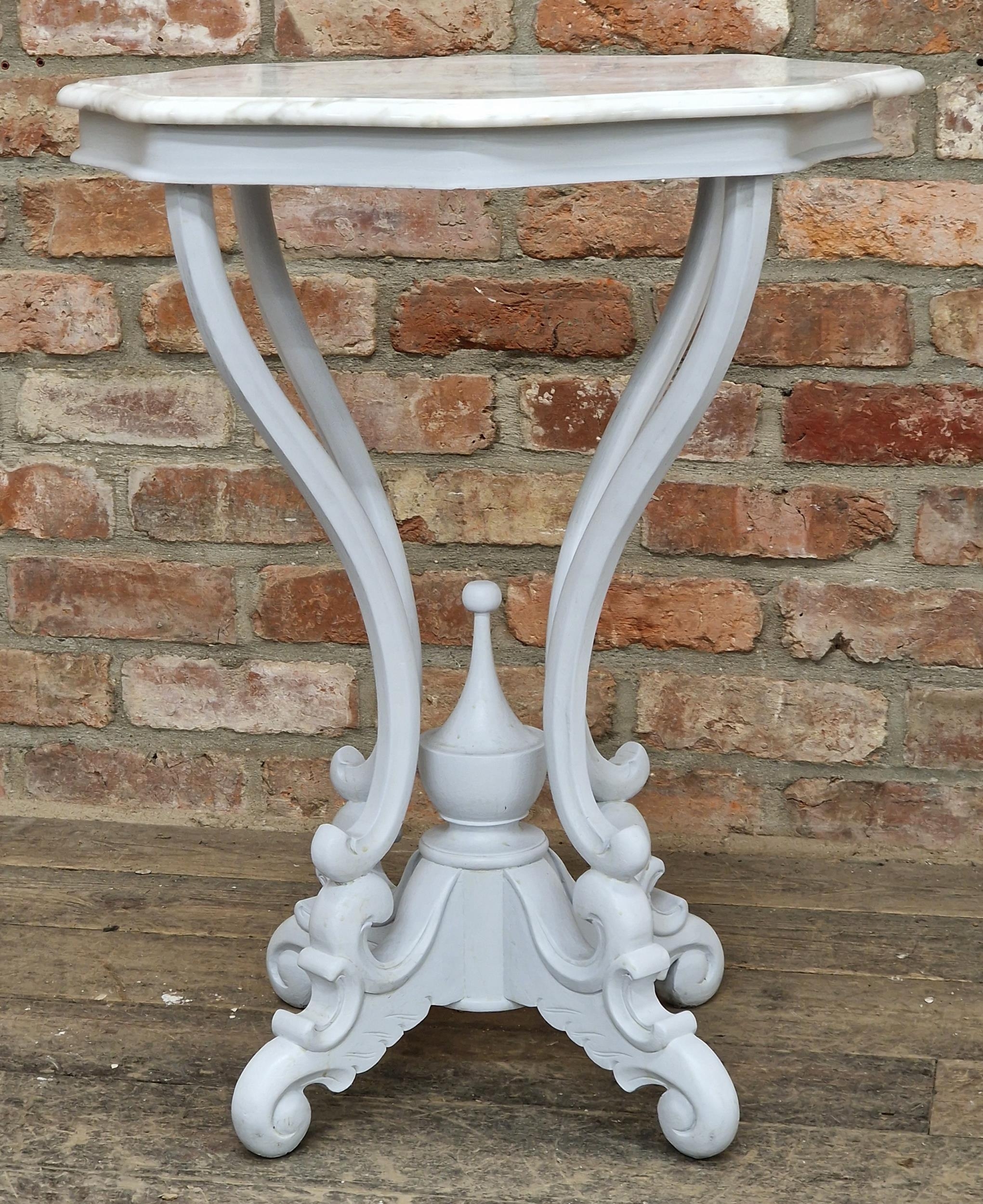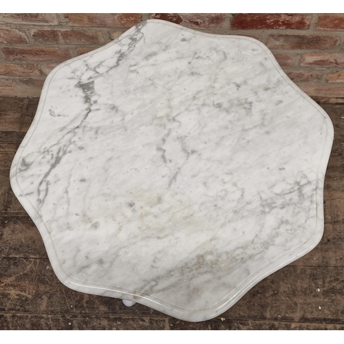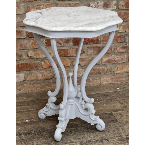 Contemporary French style marble topped occasional table with turned central finial, raised on scrolled supports, H 73cm x W 61cm