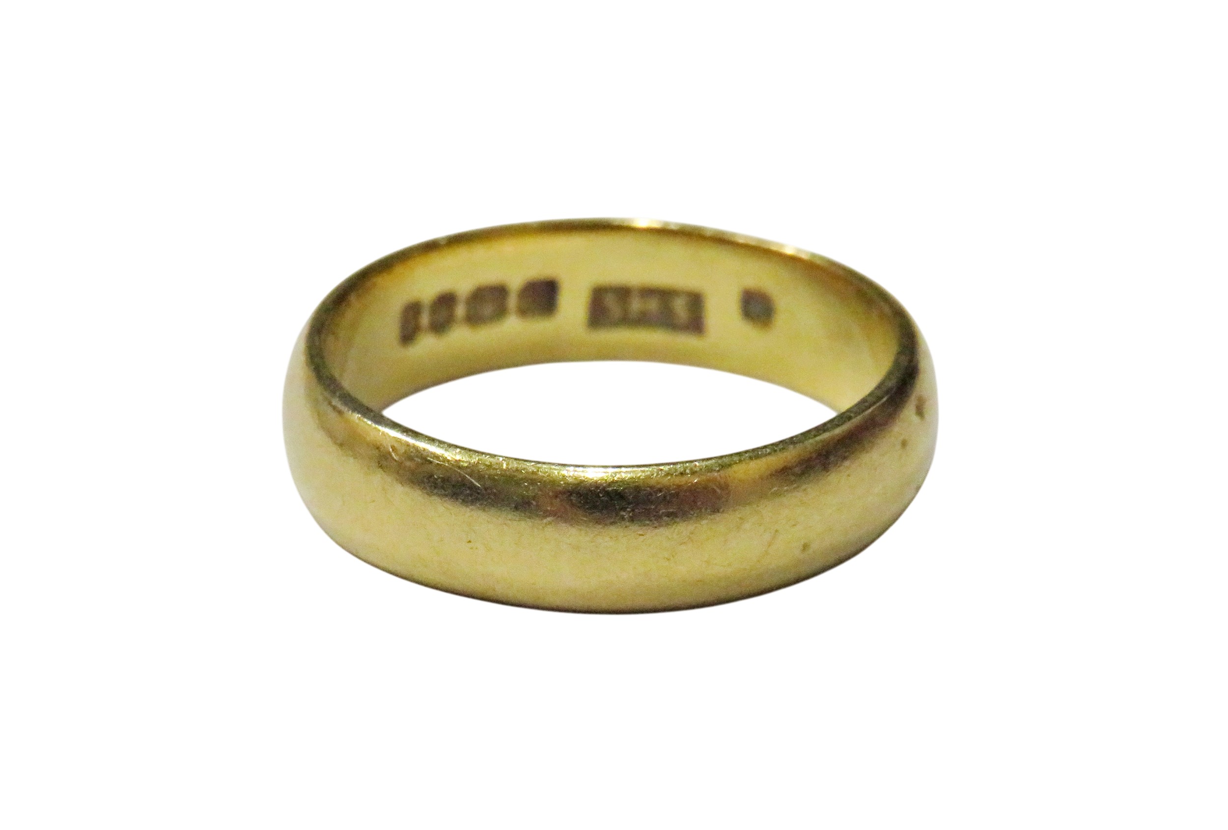 A vintage 22ct gold wedding band, hallmarks for London 1969, 5mm wide, size M, 5.7g