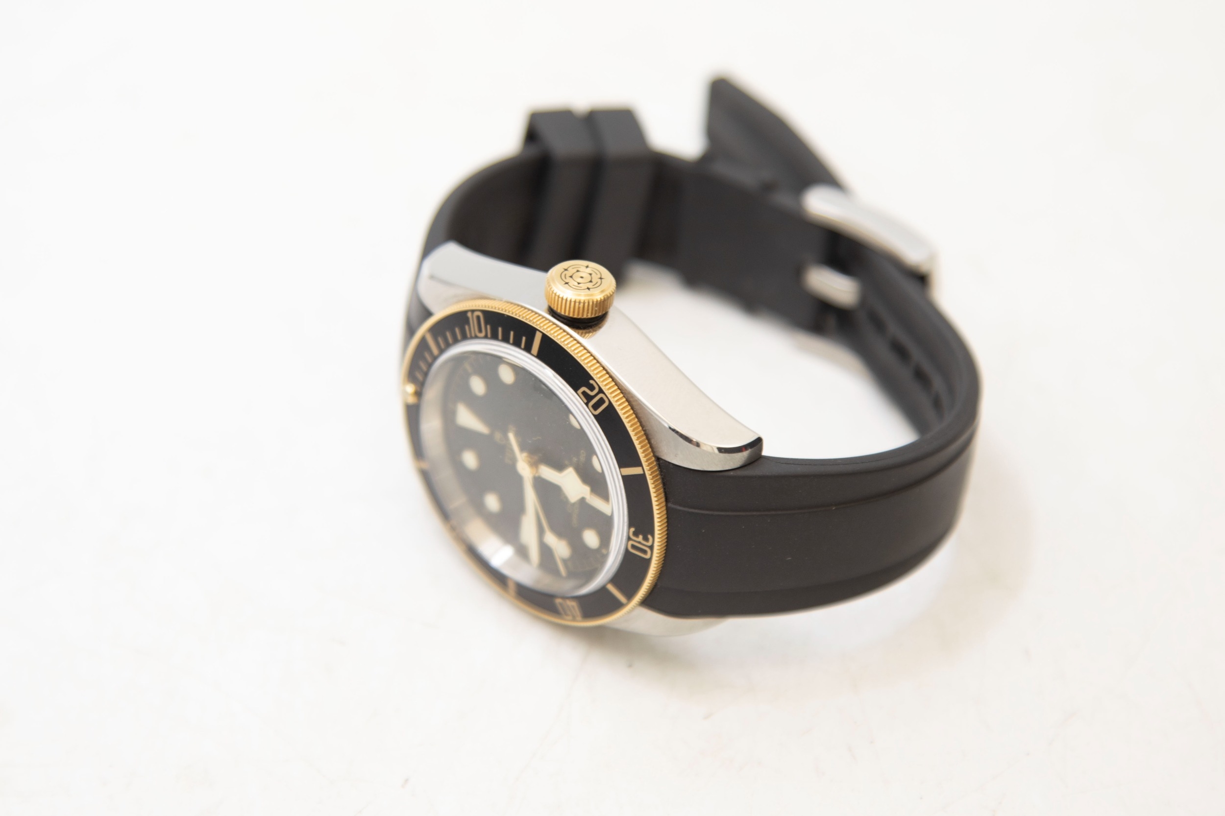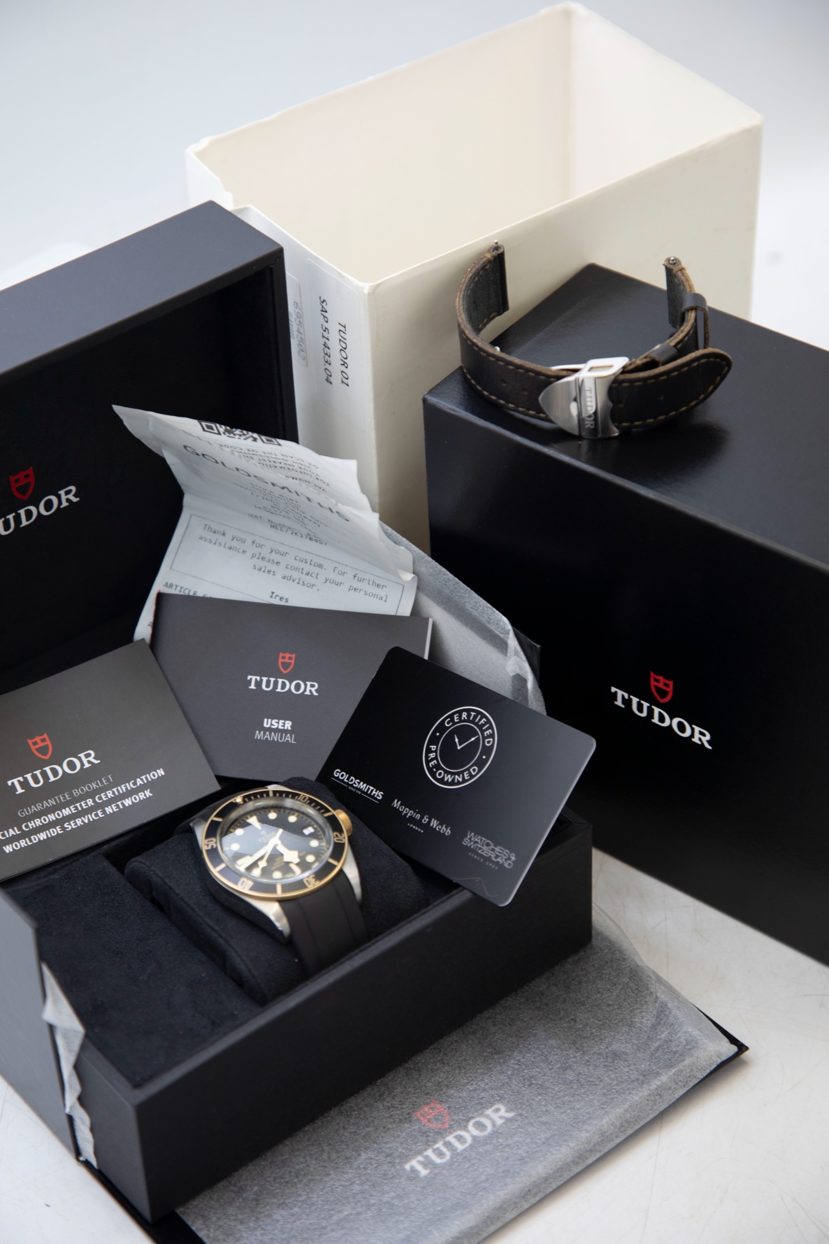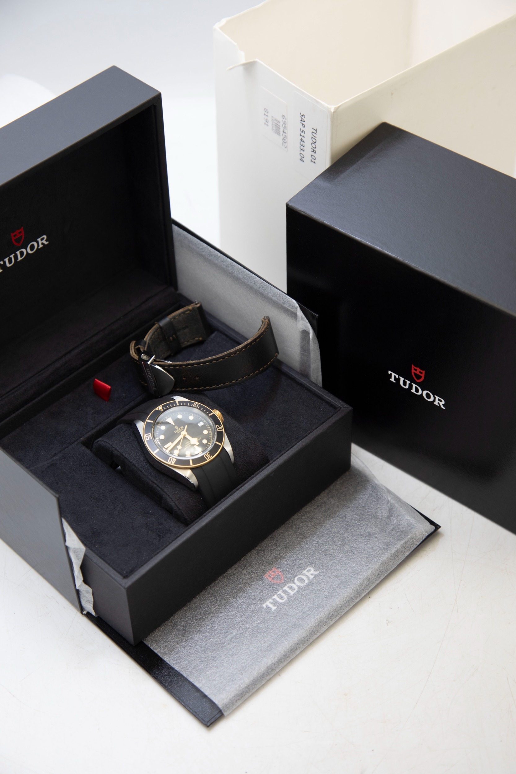 Tudor, Black Bay, a gentleman's stainless steel and bronze wrist watch circa 2020, ref;5612, Serial Number Q223867, the black dial with dot and arrow-head indicators and hands, three-piece screw case with a black enamel and bronze rotating bezel, 41mm case bronze crown (45mm including the crown), the case back inscribed 'Tudor Manufacture Calibre MT5612', on an associated black rubber strap (the original Tudor brown leather strap included with this lot), the movement not examined,; together with the original black case and outer card sleeve, Tudor International Guarantee card, Guarantee booklet, User manual, 2 Year Warranty Card and receipt from Goldsmiths for this pre-owned watch dated 12/04/2024 for £2,695