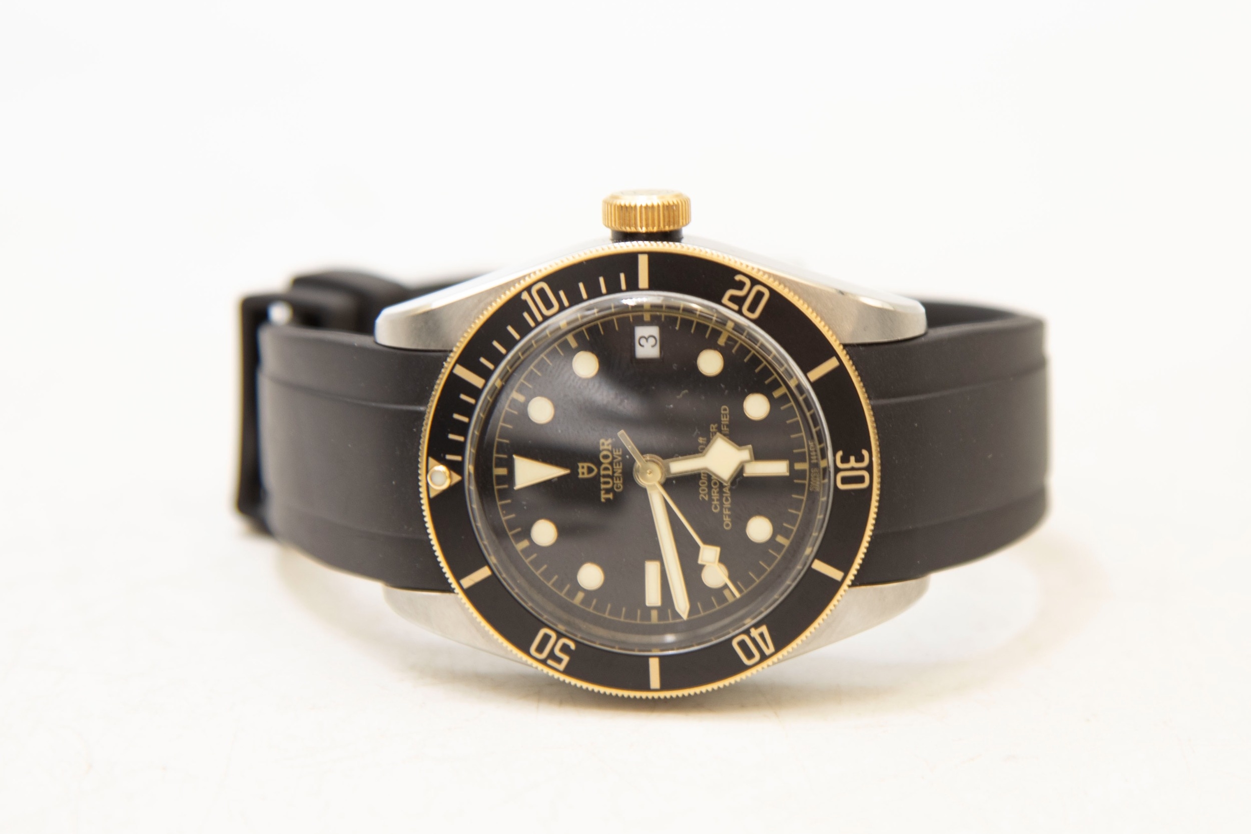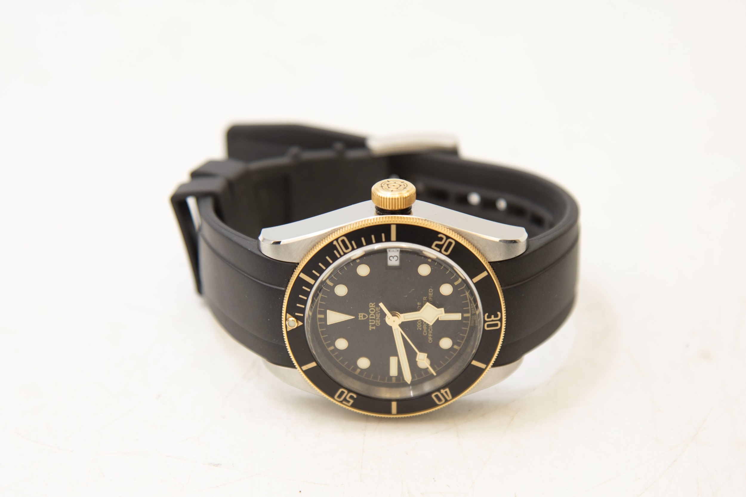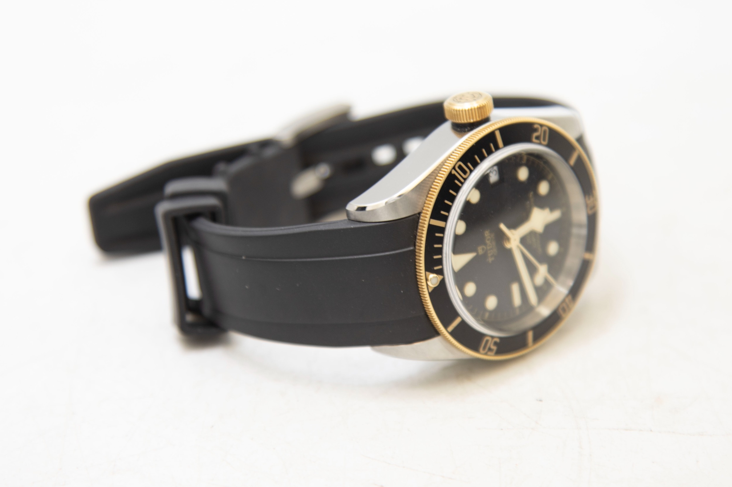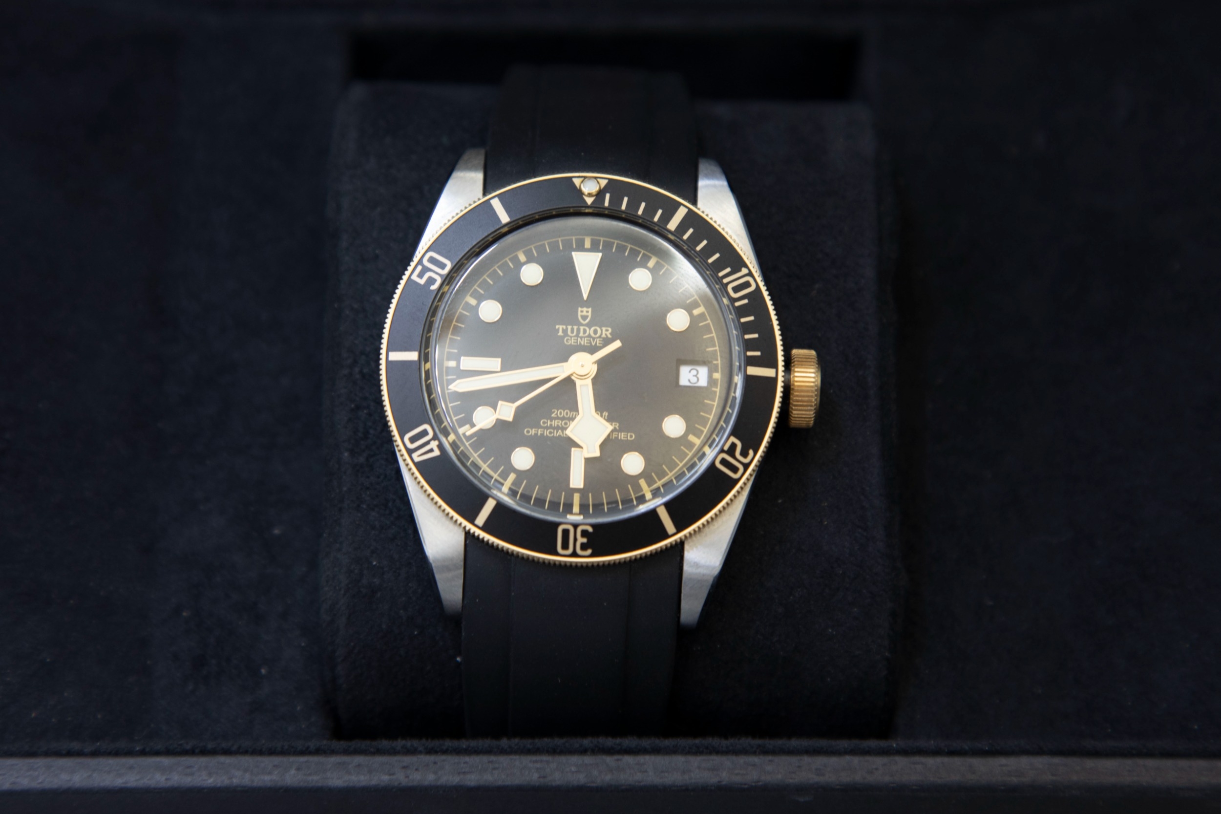 Tudor, Black Bay, a gentleman's stainless steel and bronze wrist watch circa 2020, ref;5612, Serial Number Q223867, the black dial with dot and arrow-head indicators and hands, three-piece screw case with a black enamel and bronze rotating bezel, 41mm case bronze crown (45mm including the crown), the case back inscribed 'Tudor Manufacture Calibre MT5612', on an associated black rubber strap (the original Tudor brown leather strap included with this lot), the movement not examined,; together with the original black case and outer card sleeve, Tudor International Guarantee card, Guarantee booklet, User manual, 2 Year Warranty Card and receipt from Goldsmiths for this pre-owned watch dated 12/04/2024 for £2,695