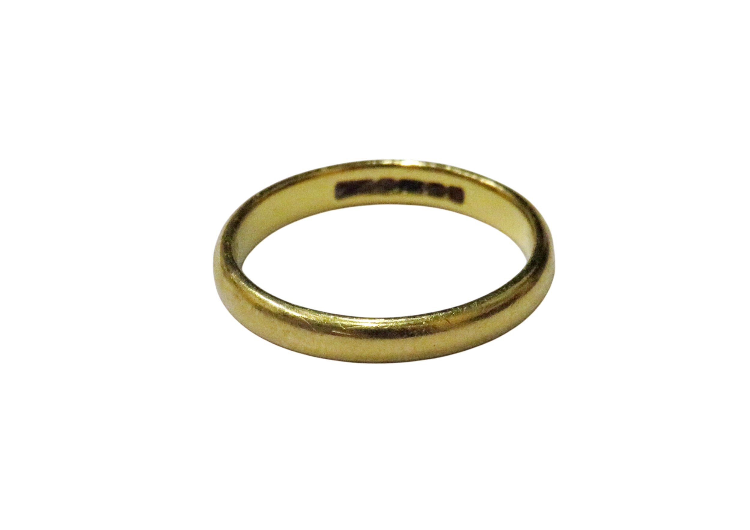 A vintage 22ct gold wedding band, hallmarks obscured, 2.8mm wide, size J+, 2.8g