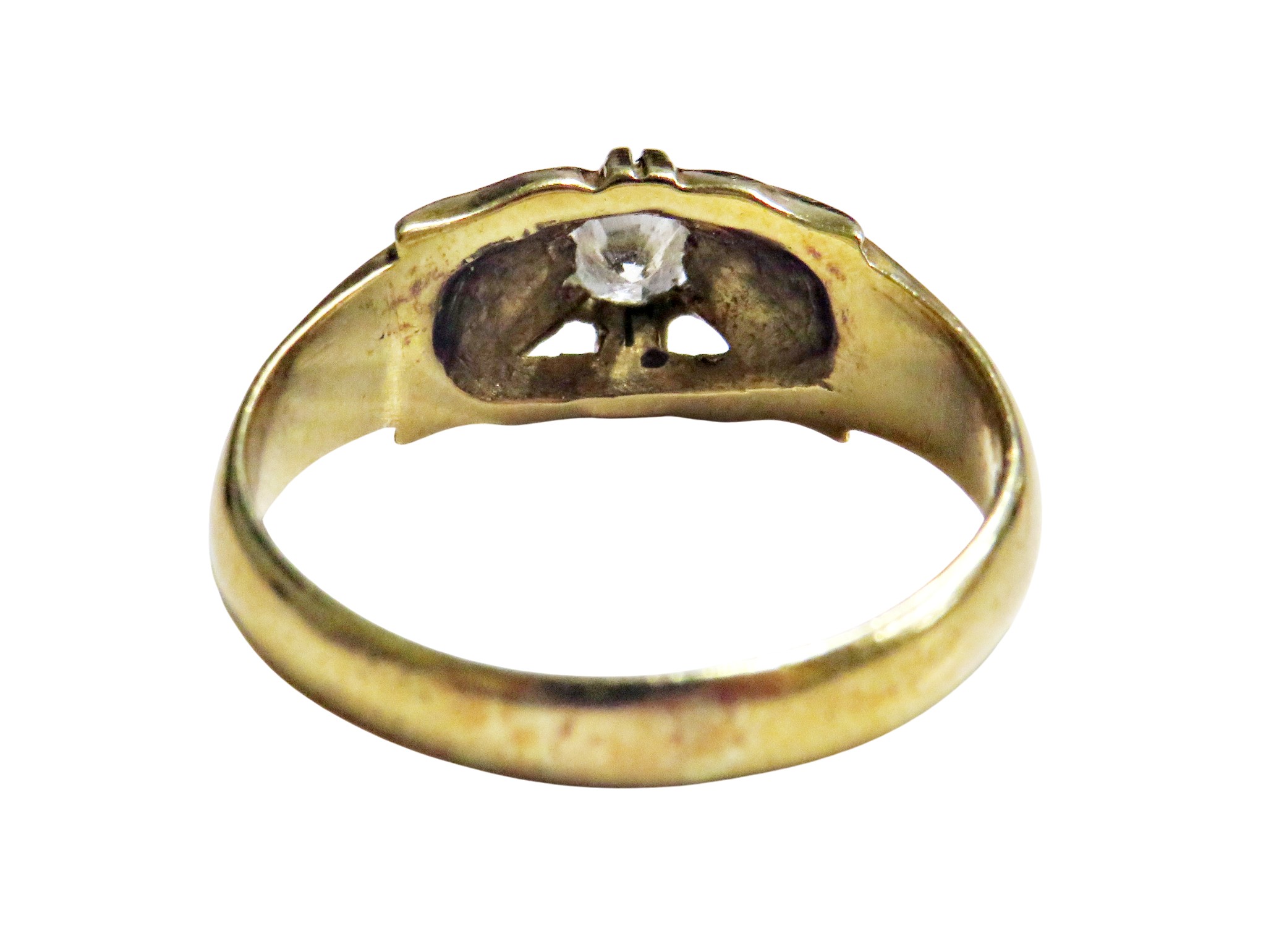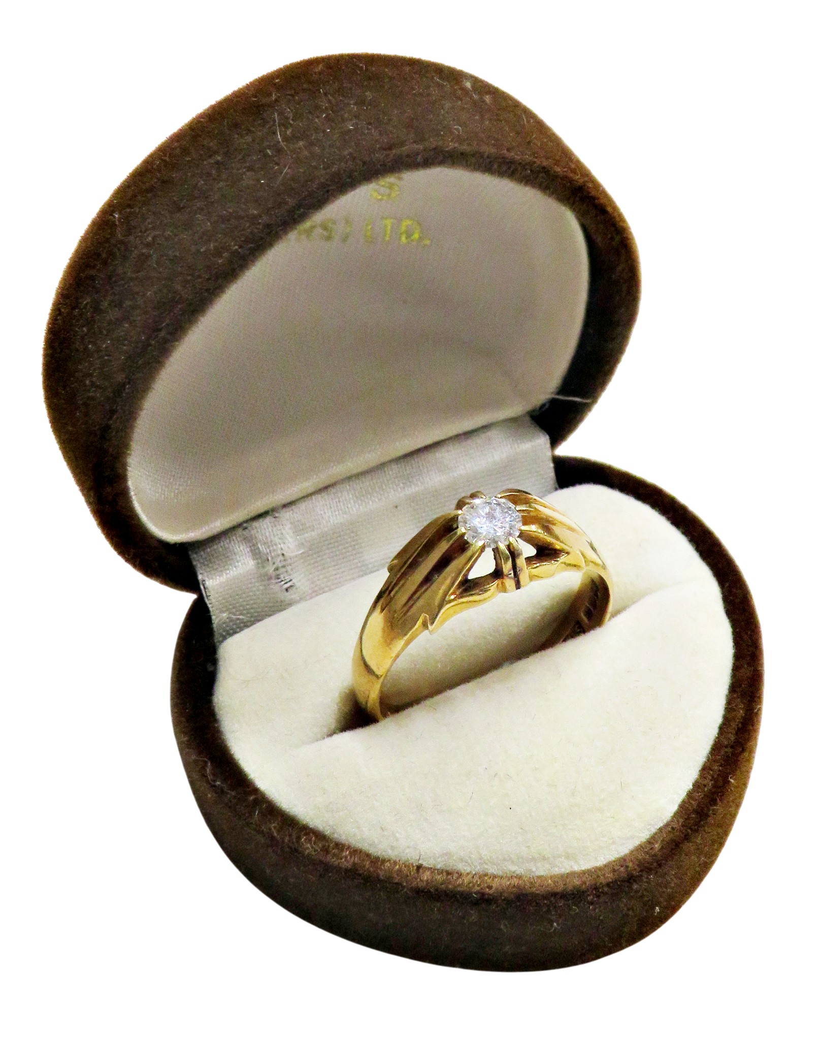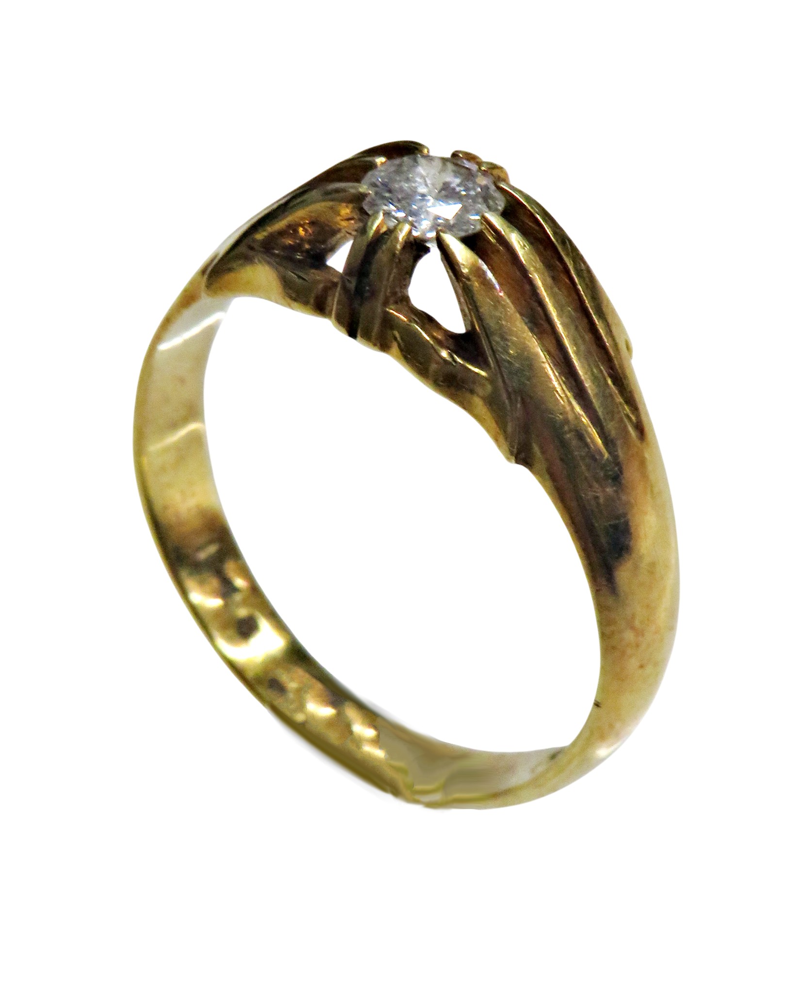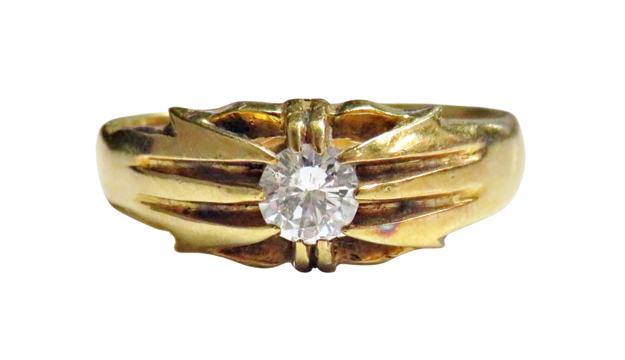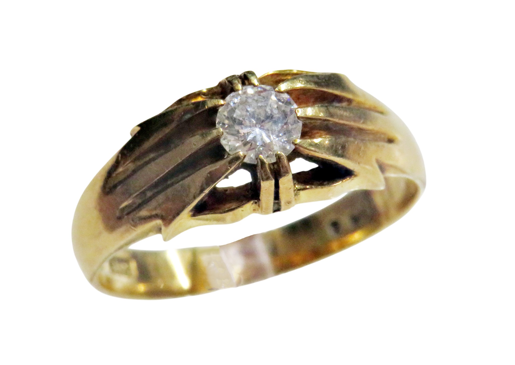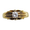 A vintage 18ct gold and diamond solitaire gypsy ring, the round brilliant approx. 0.38cts, claw set between tapering shoulders on a D-section shank with hallmarks for London 1958, size W, 6.4g gross